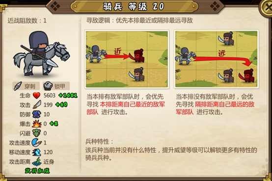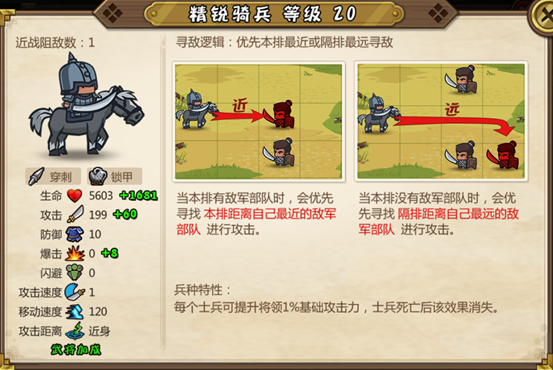 最后再提一点,骑兵的主流打法主要是绕后偷袭,消灭后方医师弓兵或者策士,毕竟这类兵种大部分是不能近战反击而且脆皮,若是正面骑兵顶着弓兵的扫射突袭,结果很大概率是骑兵被团灭的,和步兵正面对抗也是劣势。