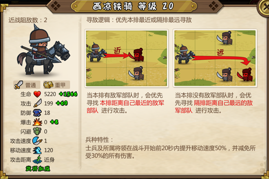 强化将领带的兵种,每个士兵提升1%武将基本攻击力。