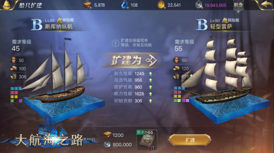 依据玩家的等级,只需消耗一定数量的木材、海市币,即可扩建或是随机打造一只属于你的舰只。