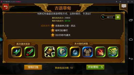 首选能进行宠物扫荡的副本必须是玩家已经3星通关的副本,其次可以根据自己的需求的某些随机掉落的物品,来选择自己想要扫荡的关卡。