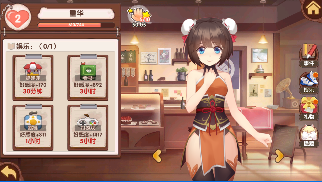 当你点击宅邸里正在移动的伙伴时,可以点击与其交流。通过好感度,解锁各种各样新奇好玩的养成事件,也可以通过指引伙伴去完成一些任务来获取更多的好感度。比如抓娃娃,看书,打游戏跳舞等等。
