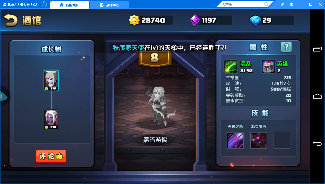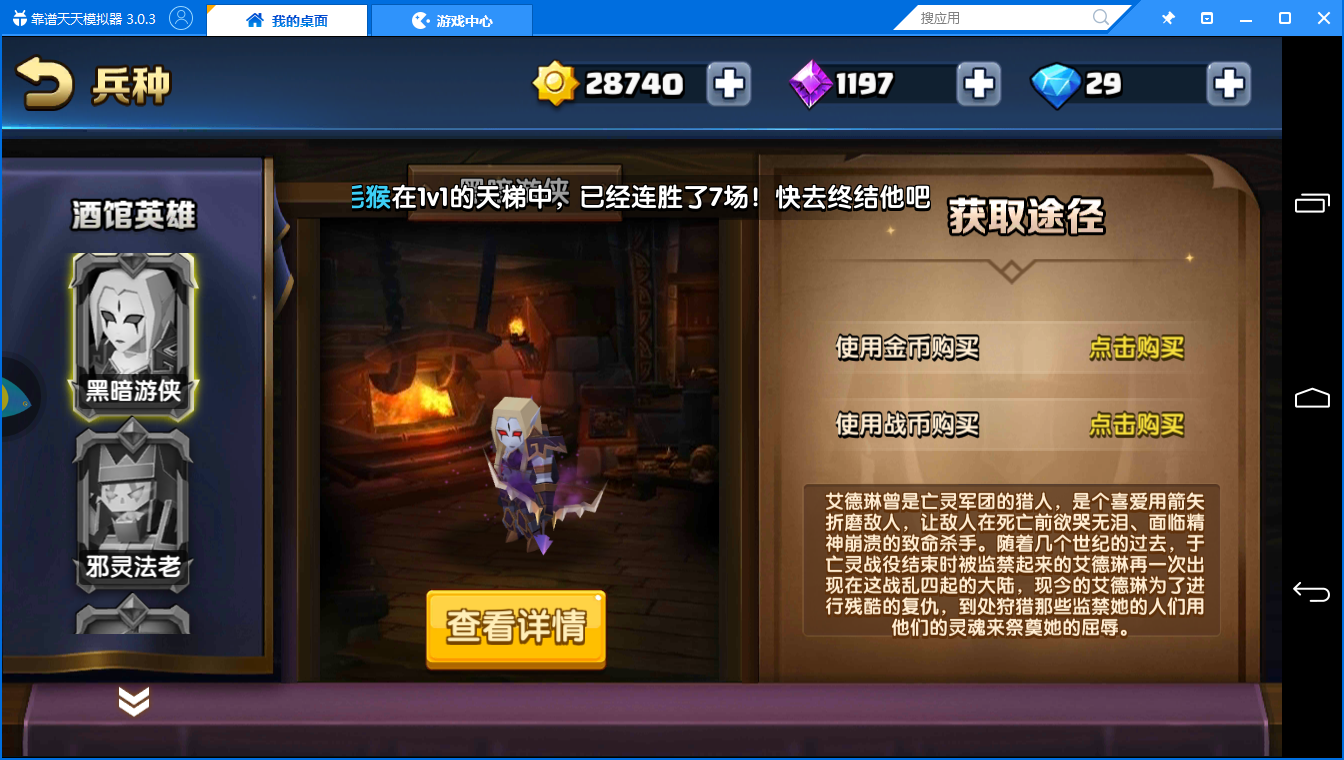 金币就能买《战就战》后排输出英雄黑暗游侠解析
