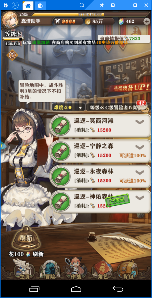 进入冒险公会后,玩家可以根据自己的需求和喜好接取一些委托。当然委托是根据你的战力和在公会的信誉值等等随机分配的,不满意的时候还可以刷新委托。