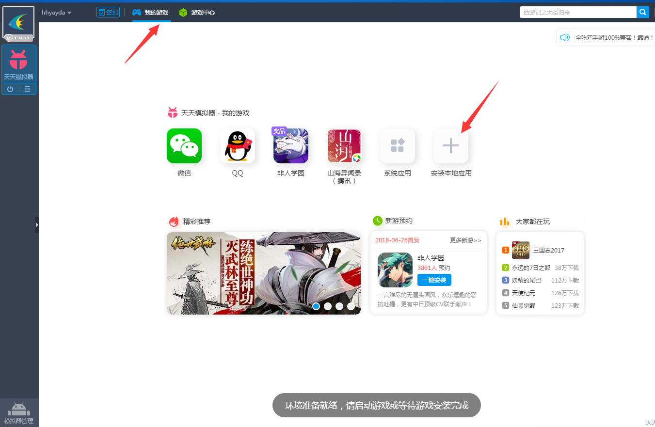 5、接着在靠谱助手我的游戏界面,点击一下安装本地应用,把下好的云裳羽衣游戏安装包添加到靠谱助手里面就可以啦!
