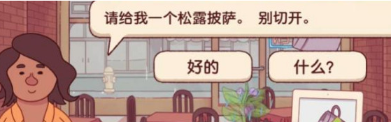 松露披萨指的就是蘑菇披萨,遇到这个订单只要在披萨里加入蘑菇配料就可以了;制作配方:面团+番茄酱+芝士+蘑菇;玩家经营天数越多,可以解锁更多的配料,客人的要求也会越来越刁钻,玩家需要熟知客人的需求才能够做出符合要求的披萨。