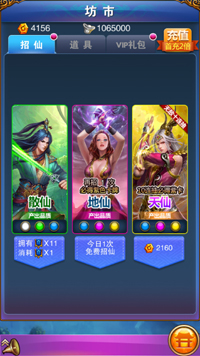 散仙:招仙令抽卡,一个招仙令可抽取一次,一次一张卡。有机会得到白、绿、蓝品质卡牌。