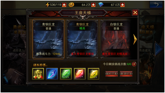 天梯王座在18级开放,是组队PVE副本,玩家只有通关前一个副本才可继续打下一级副本。副本一共分为10个,类似天梯爬塔的形式一层一层打下去,越往下打下去,副本越难,但可获得的奖励相应的也会越丰厚。