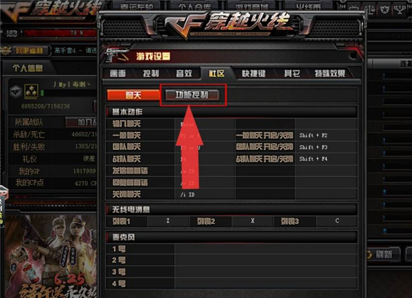3、接下来点击顶部的社区选项,随后点击功能控制。