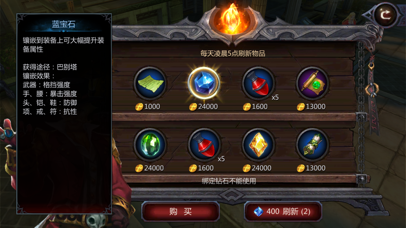 玩家还可以在镶嵌页面直接购买钻石,每一块钻石30钻石。