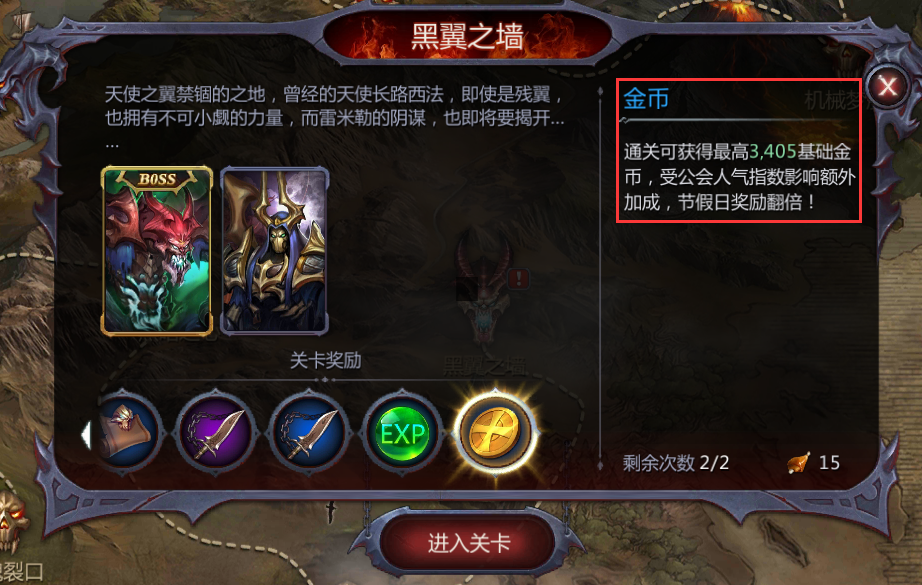 通过扫荡关卡,可获得大量金币。越高等级的副本金币越多,并且公会等级和节假日奖励翻倍!