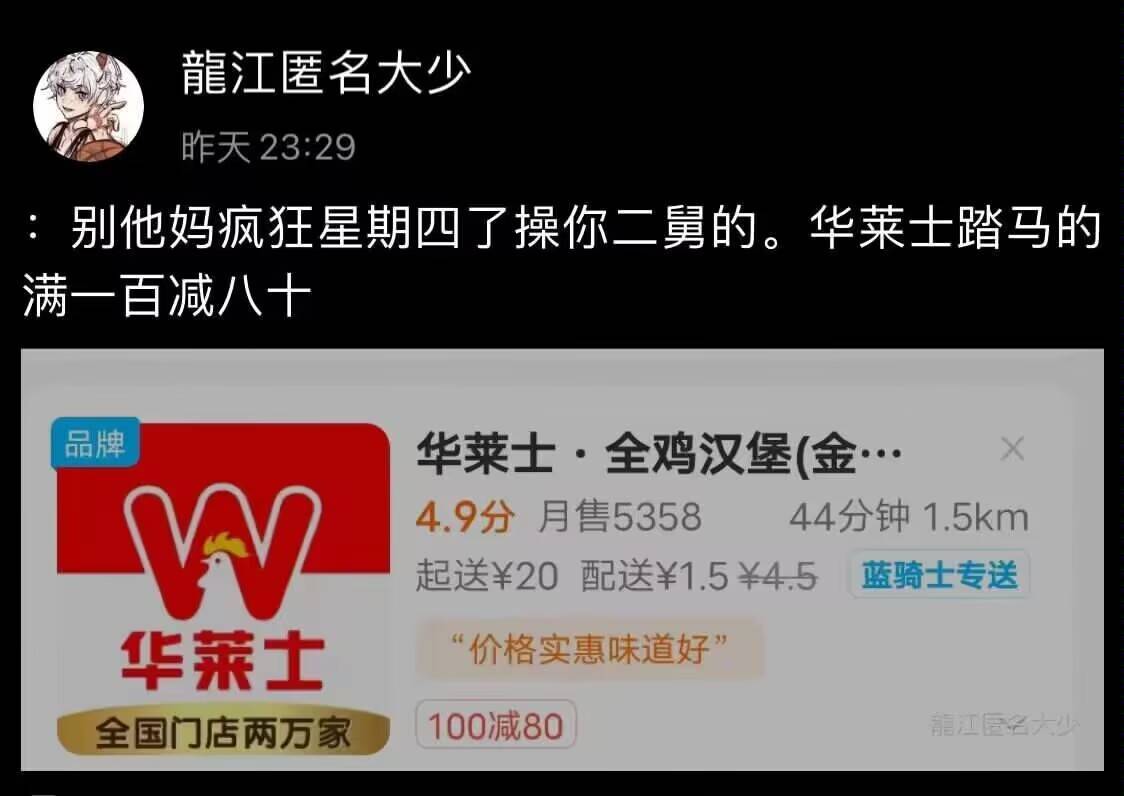 今天的群里好安静,大家都很忙吗?还是大家都太会装了,我分不清,这个社会就是这样,真真假假,假假真真,但不论如何今天是疯狂星期四,我吃肯德基你呢?