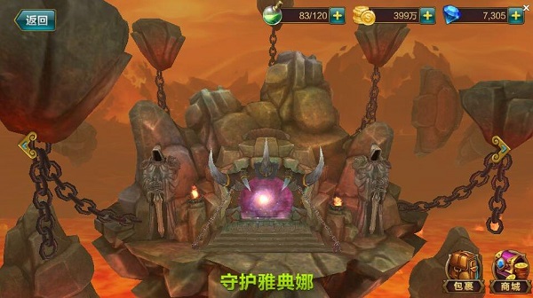 在无尽试炼中还有一个场景是“守护雅典娜”。在这里,我们同样是面对四个方向的门里不断随机出现的怪物,区别在于失败的条件则是雅典娜神像被摧毁或者出战英雄全部阵亡。在这里我们要做到的就是合理分配出战英雄镇守不同出口。