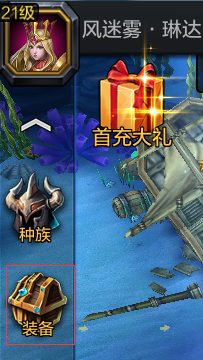 在冒险界面,点击左上角的装备UI按钮可进去装备库(下图)。