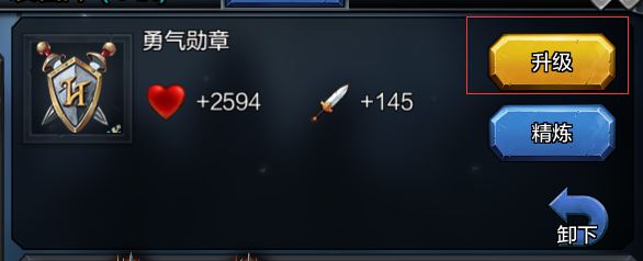 点击装备右方的升级按钮进行装备升级
