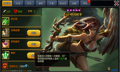 (林间射手,技能:散射,对7格范围内所有敌人造成伤害)