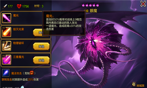 (眼魔,技能:魔光,攻击距离9格,越远伤害越高)