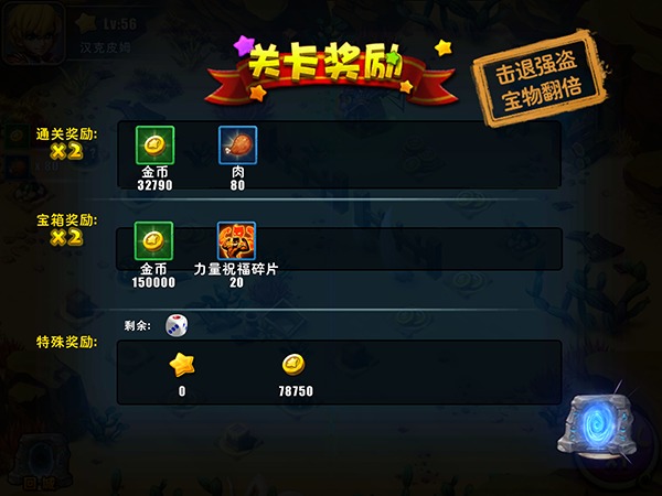 在5次投掷骰子次数用光后,会提示立刻结算,还是花费少量钻石继续走,如果已到达终点则不会出现提示。结算前一定几率会遇到强盗,将强盗战翻后,本次宝藏地图所获得的奖励会再次翻倍。