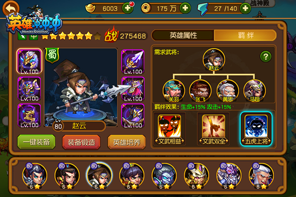 比如关羽、赵云类的输出将,我们可以优先收集激活第二、三个羁绊技的英雄。而像周泰、孙坚类的肉盾将,则可以优先收集激活第一、三个羁绊技的英雄。