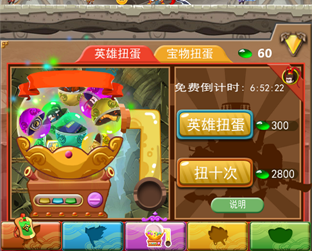 宝物扭蛋那就更不用说,装备是直接佩戴在主角身上,“终身制”还可以升级,但是升级的材料也是来源于幸运扭蛋中的宝石,所以购买《点点点三国》的扭蛋,“你买不了吃亏,买不了上当~”