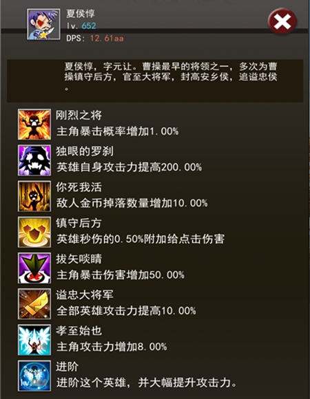 无论在哪里做官也好,经商也罢,心腹是必须的,夏侯惇就是一名典型的心腹——忠心、清廉,在玩家的队伍里必不可少!输出也是一把好手,毕竟人家是武将好不啦~!