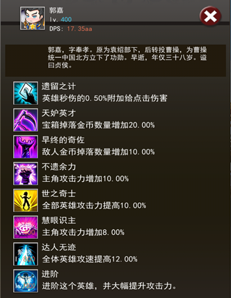 谋士中的典型代表人物,游戏中个人输出虽然略低,但技能主要是辅助主角或其他武将技能,能够大幅提升整体团队战斗力!