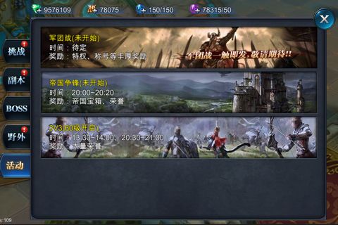 分别是帝国争锋、3v3和Boss之家