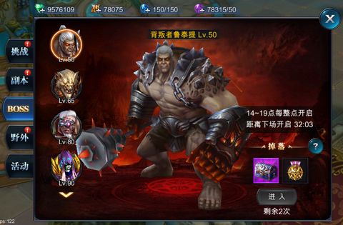 参加次数:boss之家的开启时间比较长,14-19点每个整点都会开启;每天可以参加两场