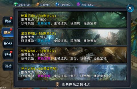 副本的奖励是越高级越好,宝物的品阶会掉落的越来越高,掉落的坐骑道具会越来越多