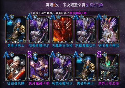 每十次砸蛋,最少最少会必出一次S级幻兽