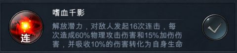 4.连招:血族的连招推荐暴击,身为一个刺客,最应该首先考虑的是,先怎么杀死敌人,再想想怎样逃生,切记,冲进战场却杀不了人的刺客,只能说是个草包。