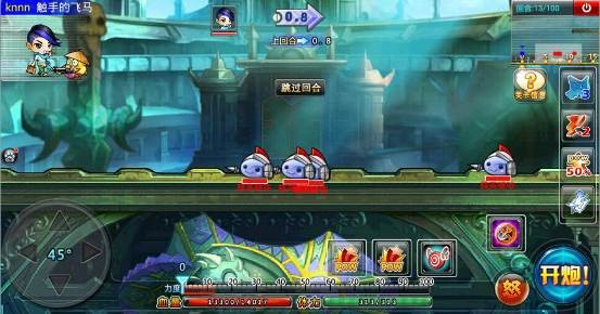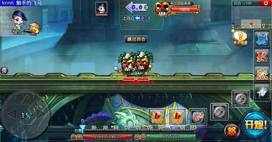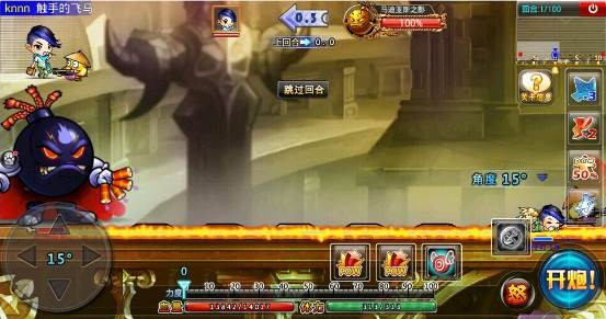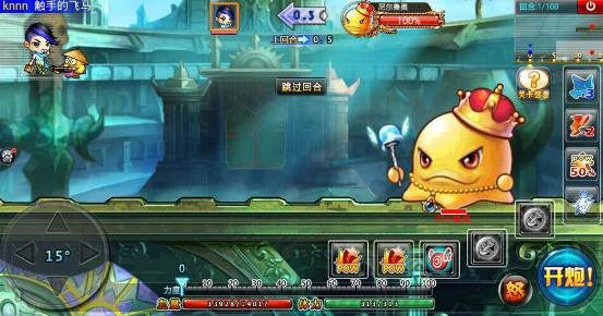 这一局要面对两个BOOS,分别是:尼尔鲁奥和丹妮莉丝。随便先攻击一个BOSS,用50%pow的道具,丹妮莉丝需要65度高角,70-80力度左右可以击中,而尼尔鲁奥需要调低角度,小编喜欢用40度50-60力,很精准很完美。