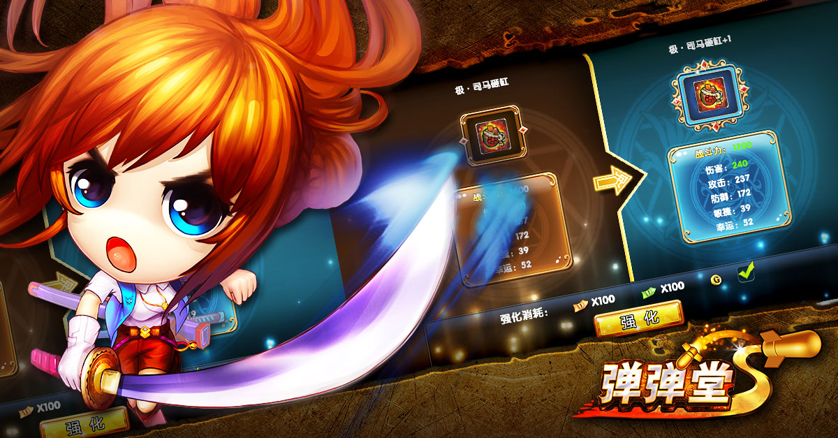 为使玩家战力拥有质的突破,强化系统出现新突破,物品最高强化等级由最初的12级提高至15级!强化模式不再是使用经验值成长,改为几率性成功。强化1级-3级百分百成功,强化4级后将会改为概率成功。拼人品的时候到了,玩家有几率用最少的强化石,达到更高的强化等级!偷偷透露一句,新的强化模式每级所需强化石大幅降低,而强化后的武器、帽子以及衣服的伤害值/护甲值将会大幅提升~