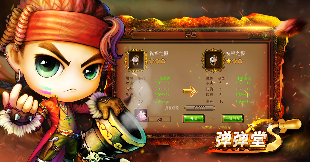 真人竞技,强者争霸单人跨服段位赛,《弹弹堂S》公测版后,玩家可在角色达到18级时开启跨服战功能,届时游戏大厅开放入口将可以与各区各服的玩家来一场高手之间的巅峰对决!段位赛为一周一个赛季,共有25个段位,由等级战力类似的玩家进行在线对战,无论胜败都将获得弹弹币,弹弹币可在商店兑换高品质道具跟装备。玩家获胜可以点亮一颗星,失败会熄灭一颗星,星满之后,即进入下一段位。传奇段位虚空以待,王者宝座等你来抢!