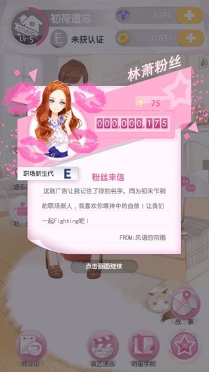 玩家一看到这里如果以为这仅仅是一款换装游戏,那就大错特错了。这款游戏的另一个核心就是明星养成之路,玩家将亲身走进《小时代》的世界中,化身四大主角,从主角出道前的平凡生活开始体验,感受明星成长的全过程。除去日常任务外,玩家的主要工作就是参加各种公告活动,提高自身修养。