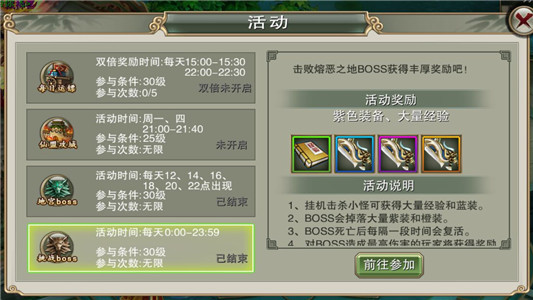 参与活动不但有大量的经验值,还有神装以及丰厚的奖励,不容错过!要留意活动的时间哦!