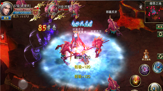 如果事情都做完了,有没有什么事情可以做的时候,可以利用闲暇时间去“熔恶之地”挂机。挂机也是一个获取经验的重要方法,特别是那些时间不多的玩家。建议在挂机的时候吃上一个双倍倍经验符,可以让经验成倍地增加。