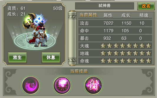 培养宠物主要分为等级、资质、成长、灵修、技能这5个方面。