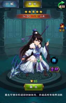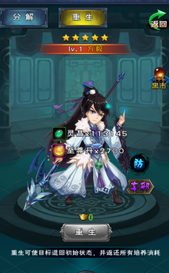 可以重生的包括:人物、宝物和装备,重生主要就是把道具还原到最初的样子,同时系统也会返还重生前消耗的资源。
