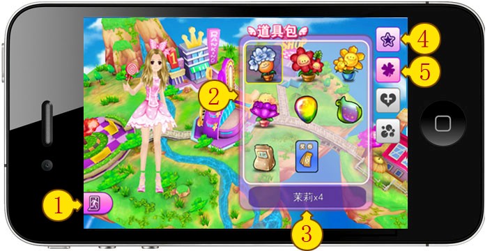 1.返回按键。如果您想退出道具包功能只需点击左下角的返回键就能退出了哦
