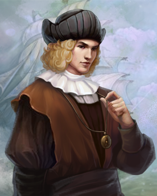 克里斯托弗·哥伦布,意大利航海家、探险家。自青年时代起便航海经商,并逐渐展现出远洋航海家所必备的才能。随着周围的认可,他开始作为勘探家跟随众多商船队出海,着手测绘地图。他相信大地球形说,认为从欧洲西航可达东方的印度。在西班牙女皇鼎力支持下,先后4次出海远航,最终乘坐巨型卡拉维尔帆船圣玛利亚号成功横渡了大西洋。