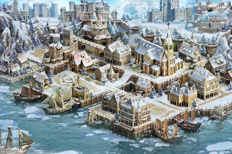 结束海上的战斗之后,航海家们来到港口进行贸易活动。环球航行中走遍世界,不同气候纬度下的地貌组合与不同风土人情下的建筑艺术,都让痴迷地理与历史的玩家们体会到世界那么大,玩着游戏就能看。北欧港口的概念图中冰雪覆盖,传统而古老的建筑优雅宁静,是航行中一场美丽的邂逅。