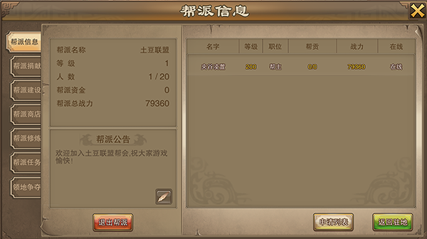 帮派建设分为帮派大殿、帮派商店、帮派修炼室,帮派大殿等级决定帮派商店和修炼室的可升级等级
