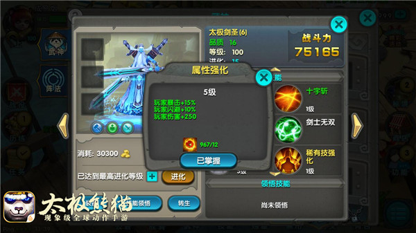 可以看出太极剑圣是一位非常暴力的武神,所有技能和属性都偏重输出,还能为玩家带来最重要的暴击和伤害加成,让大家的战斗如虎添翼!更多的精彩内容,请关注《太极熊猫》官方网站!