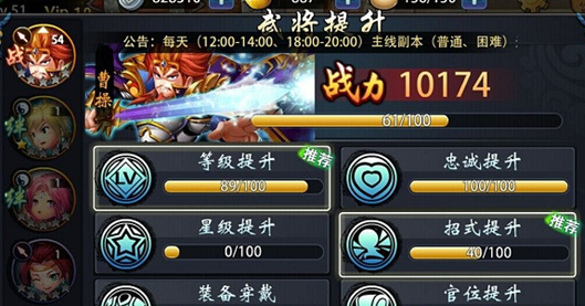 武将(升星、升技能、天赋、牵绊、专属武器、合成)