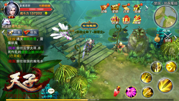 随着每天的月签奖励和角色战力的提升,同样在活动界面可以获得仙灵金翅的碎片,猎鹰外形的金翅全身闪烁着金色的光芒,飞翔着跟随在玩家身后也是酷炫无 比。其技能点穴截脉伤害能力一般,但速度惊人,还会造成前方十六米以内的玩家沉默三秒,这让玩家角色具备里极大的优势。在竞技场中首先使用点穴截脉, 拥有三秒优势的玩家角色,足以秒杀一般的对手。如果在野外遭遇敌军,无论是击杀还是逃生,点穴截脉都是尚佳的选择。国战里更攻无不克战无不胜的技能利 器,在人员密集的桥上,释放点穴截脉就意味着敌军在桥上的所有单位在三秒内只能普通攻击,在一瞬间击溃敌军是国战取胜的最佳战术。