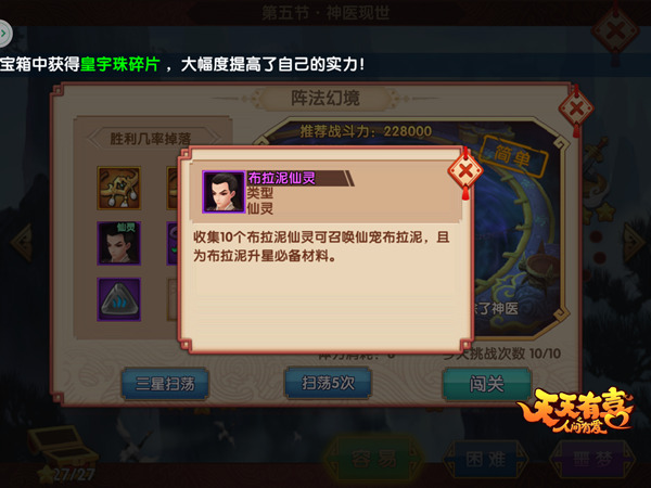 在云游副本中,通关固定的关卡会有一定的仙灵掉落,由于副本分为容易、困难和噩梦三种难度,猎妖师们尽量三星通关有仙灵产出的关卡,这样在后期进行扫荡时,既可以获得仙灵,也可以得大量的经验值。除了主线副本外,在奇遇活动中战斗时,也会有一定的几率掉落仙灵,难度越大,掉落仙灵品级越高。