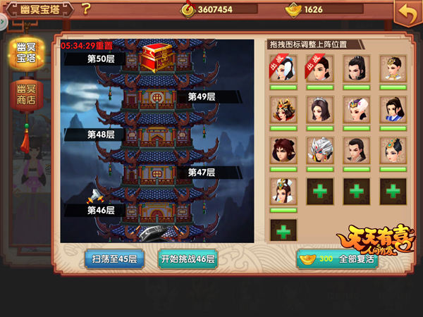 在幽冥魂塔中,每通关五层可获得稀有宝箱,宝箱中有仙宠仙灵和大量的铜钱等奖励,不过该奖励只能一次性获得,不能重复领取。由于某些仙宠之间有羁绊属性,当同时上阵时便会激活,这里的同时上阵不同于普通副本中必须上阵两个有羁绊的仙宠,只要在上阵列表中,便都能成功激活。仙宠解锁必杀技后,战斗中蓄力到一定值,点击仙宠头像就可以手动释放必杀技。