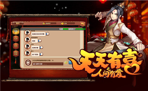 《天天有喜》正版手游是一款由湖南卫视2016年热播贺岁神话大剧《天天有喜之人间有爱》授权改编,天象互动携手芒果互娱共同出品的3D神话手游。游戏沿袭《天天有喜》电视剧经典画风与人设,将玩家带入颇具神话色彩的人神妖狐世界。野外群战多人pvp体验,激爽人宠连招Combo设定,一种职业两种角色的创新变身玩法,让你感受神话般恢宏气势的游戏体验!