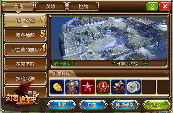 《幻想编年史》掉落的装备也是非常明确的,副本难度分为普通、英雄和挑战三个难度。光明正大的告诉英雄们,挑战难度里面会掉落较好的材料以及兑换顶级装备的材料哦。