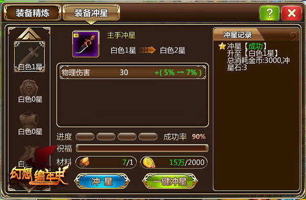 目前,在《幻想编年史》中装备培养有精炼、冲星、重铸三种。